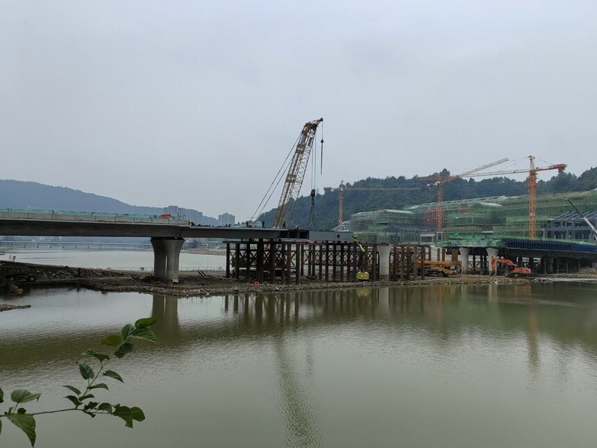 蒼容潯江大橋主跨鋼箱梁順利吊裝